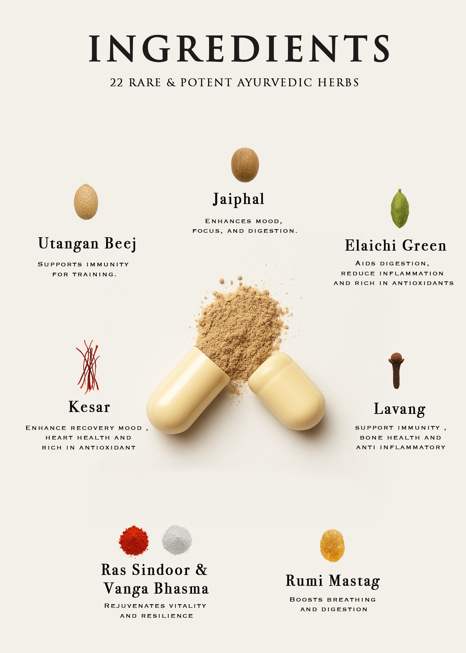 - Ras Sindoor & Vanga Bhasma :- Rejuvenates vitality and resilience.
